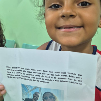 Ao abrirem os envelopes, o brilho nos olhos e os sorrisos revelaram o impacto dessas palavras, mostrando que, além do conhecimento, eles carregam consigo o apoio, o carinho e o orgulho de quem amam.