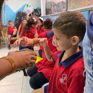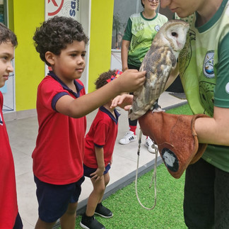 Recebemos a Equipe Animal, que trouxe para nossas crianças uma experiência inesquecível com sete animais incríveis: coelho, chinchila, furão, cobra, coruja, falcão e até uma barata!